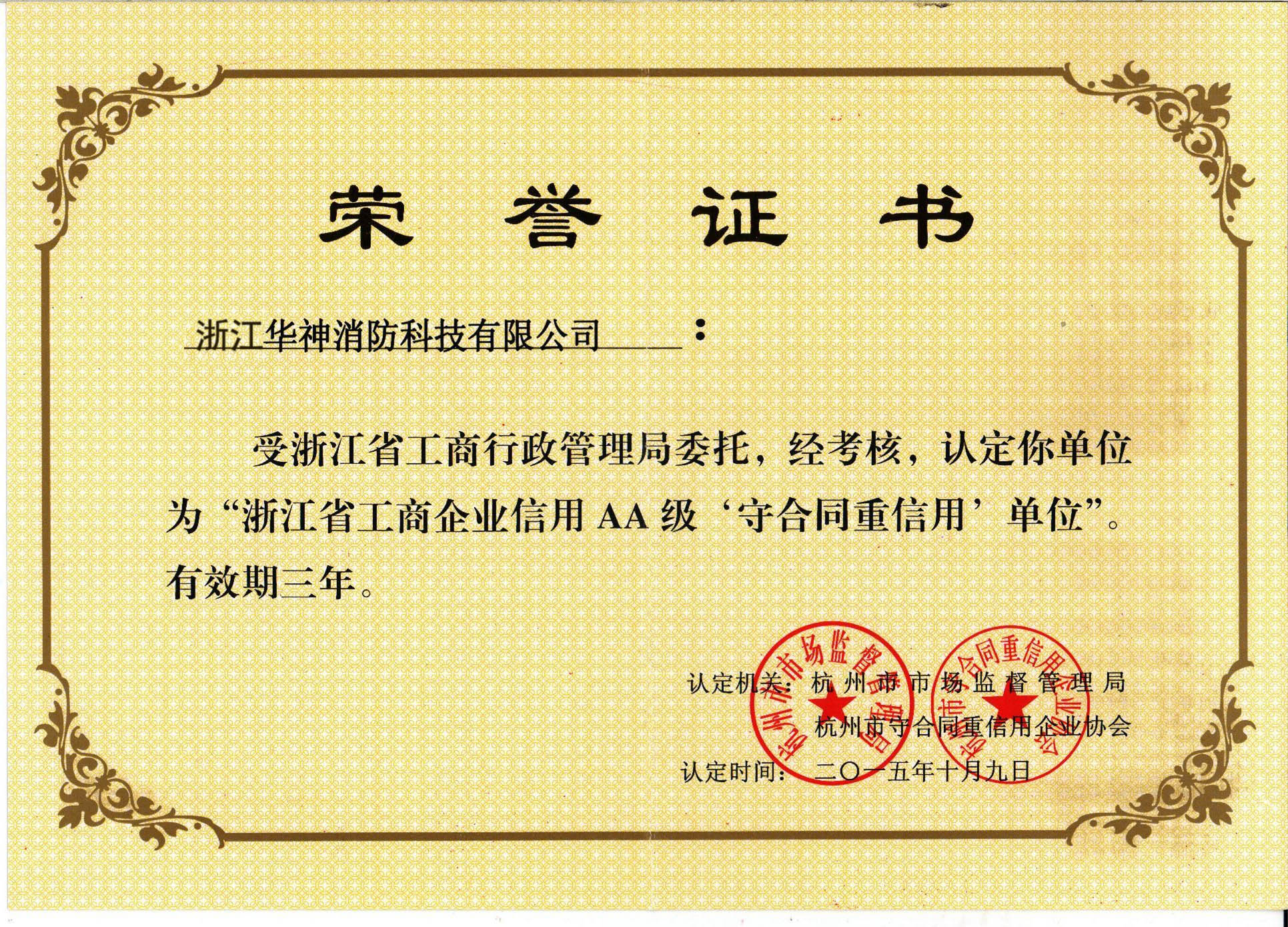 工商企業(yè)信用AA級證書