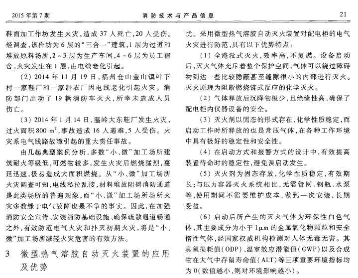 微型熱氣溶膠自動滅火裝置在“小、微”加工場所的應(yīng)用