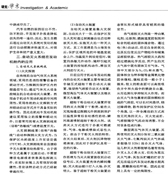 自動滅火系統(tǒng)在機動車發(fā)動機艙的應用研究