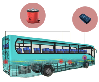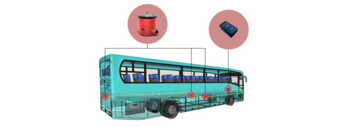 計(jì)案例:江西百路佳新能源6.5米長(zhǎng)客車(chē),內(nèi)有電池艙5個(gè),故需設(shè)計(jì)的保護(hù)區(qū)為5個(gè)保護(hù)區(qū),每個(gè)保護(hù)區(qū)配置1臺(tái)自動(dòng)滅火裝置(型號(hào)QRR0.03GW/SHS-AR23ZF),5個(gè)保護(hù)區(qū)內(nèi)的5臺(tái)裝置通過(guò)總承線(xiàn)束和駕駛員操作盤(pán)上的模塊聯(lián)接。